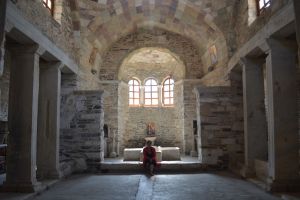On the way back to Paros (having spotted philhellene Tom Hanks, we’re convinced on Antiparos) I paid my homage to the wonderfully labyrinthine Parikia Church of a Hundred Doors, said to have been founded by Helena, mother of Constantine the Great, while my two girls snuck in a bit of light wind-surfing. We all ended up swimming to light a candle for loved ones on the little rock chapel in the gulf of Paros before getting the boat back to Athens.