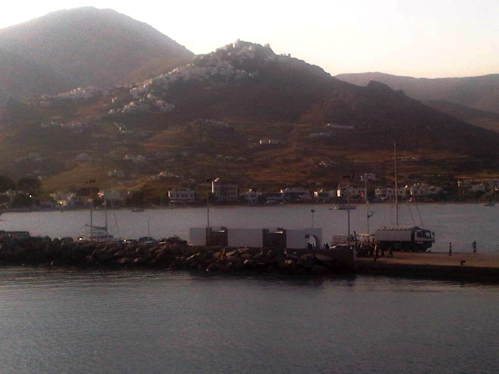 Much as I hate turning down helicopter rides, I was a day too late to get a lift to Sifnos with the owner, and ended up on the Aghios Georgios which takes 5 hours from Piraeus, but is delightful – go “Distinguished Class” and you get a private deck with deckchairs and a white piano in the saloon. Scenic stops at Kithnos and Serifos, with sunset arrival at Sifnos. All for 35 euros and just as nice as a helicopter.