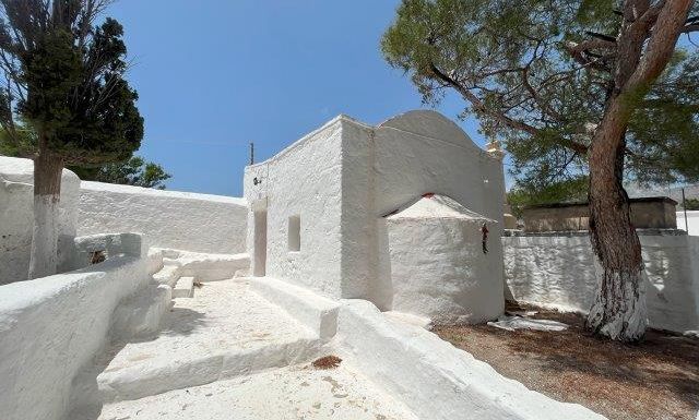 Just outside Pothia lies the cave Church of Panteleimon,  wedged into a cleft in the mountain with a freshwater spring running down the little ravine next to it and an ornate bell tower outside. Inside, cool dim glimmerings of icons and stained glass meet the eye as it adjusts to the dark, and lighted prayer candles waver in their bed of molten liquid wax , their smoke prayers rising up to the ceiling.