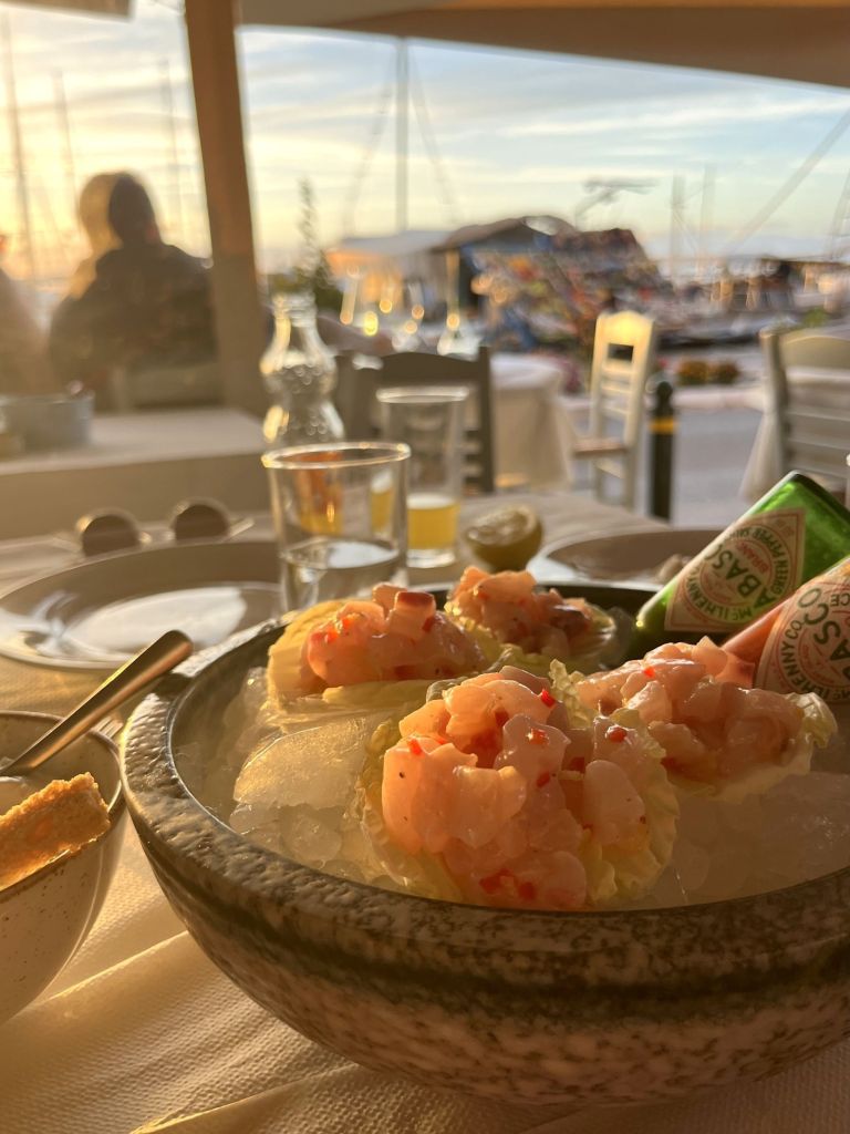 Behind the town’s main streets, you can take in the old customs house, the fish market, and several neoclassical mansions before ending the day at the Bouza Lighthouse. Watch the sea turn violet at sunset, then settle in at Aiakeion for what may well be the best taramosalata and whole grilled shrimp that I have ever tasted.