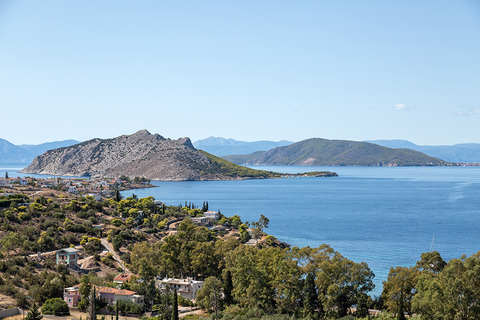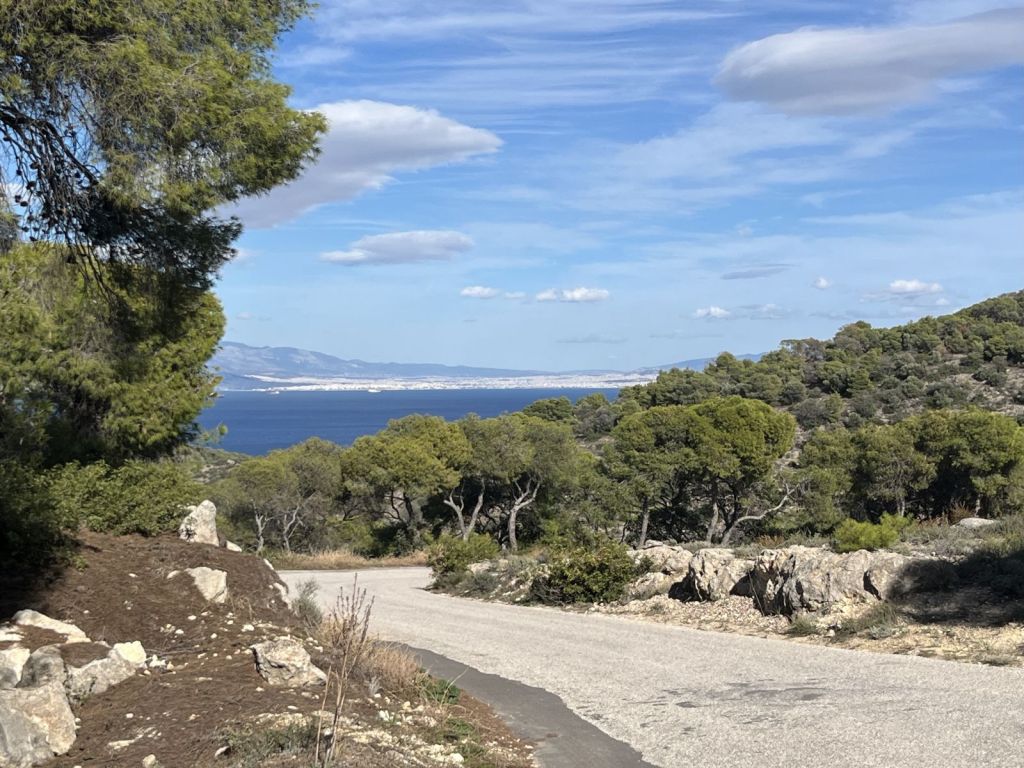 At the summit stands the small white chapel of Prophet Elias. From here, the panorama extends across the Peloponnese, Salamina, Poros and, on clear days, the outline of Athens on the horizon.