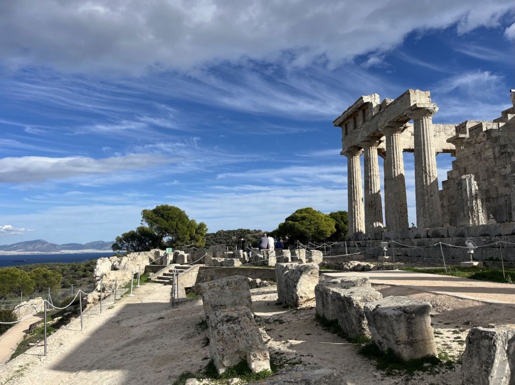 From the temple platform, you can gaze over the Saronic Gulf, taking in the smaller islands, the Peloponnese coast, the Attica coast, and the glittering new skyline of Athens Hellenikon – which is backed by the snow-capped mountains of Parnassos on a clear winter day.